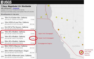 oh… Que es esto? Algo así como una predicción? Mejor decir Pronóstico Pueden ocurrir grandes temblores. Esperamos que no suceda. Pero atención. En esta composición podemos ver que el area señalada en el tweet de @oaxiiboo6 de 7 may 2014, corresponde al area cercana a Ridgecrest, que será repetidamente señalada posteriormente por @oyagaaayuyisaa, OAY- Stat 18, tras un fuerte seismo en 2019. |