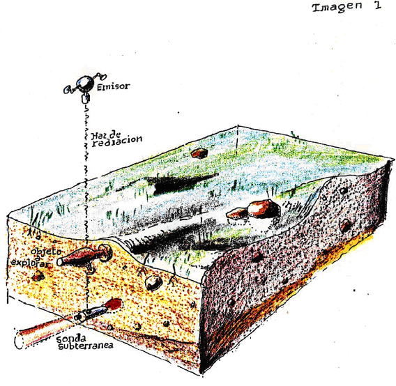 Los remotos principios de la Humanidad de Ummo han dejado su huella en numerosos restos arqueológicos. Nuestros métodos de análisis estratigráficos que nos permiten analizar sin destrucción cualquier área topográfica, explorando capa por capa del terreno con espesores laminares de menos de 0.2 micras utilizando finos haces de partículas (1) neutrínicas y un receptor que penetra a gran profundidad en el terreno fundiendo por medio de un gas ionizado a altísima temperatura el medio rocoso y transmutando los residuos en hidrógeno gaseoso, nos han permitido estudiar prácticamente todo el gran continente de OYAAUMMO (vea imagen 1)