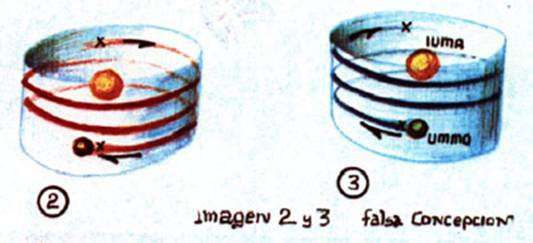Nuestros antiguos “cosmólogos,” ignorando que el plano de la eclíptica de UMMO posee distinta orientación que el del 2º OYAA que gira alrededor de IUMMA y al que tomaban como referencia, interpretaron que la trayectoria de UMMO era duplohelicoidal (imagen 2 y 3) sobre la superficie de un cilindro imaginario.